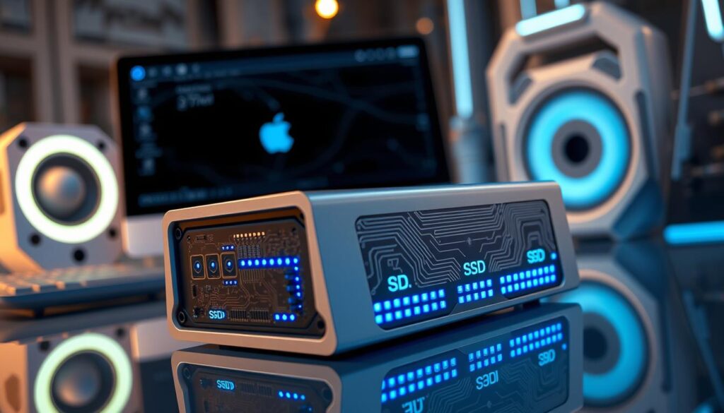 The Apple iMac M4 is built for top-notch storage and memory. It has a cutting-edge storage system and a new unified memory architecture. These work together to make your computer work better.